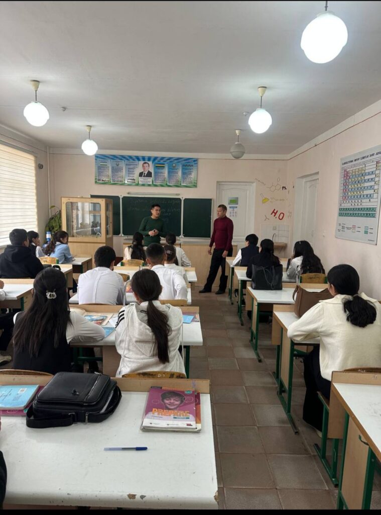 🆕 Respublika ixtisoslashtirilgan ruhiy salomatlik ilmiy-amaliy tibbiyot markazining narkologiya xizmati bo‘yicha Qoraqalpog‘iston filiali mutaxassislari — doktor narkolog A. Jalilov, feldsherlar D. Perdebayev va K. Atamuratovlar joriy yilning 27-noyabr sanasida aholi salomatligi va millat genofondini giyohvandlik va narkojinoyatlardan samarali himoya qilish bo‘yicha kompleks chora-tadbirlar to‘g‘risidagi PF-207-sonli farmon ijrosini ta’minlash maqsadida Nukus shahri 47-sonli maktab o‘quvchilari bilan uchrashuv o‘tkazdi. Uchrashuv davomida o’quvchilarga tamaki tutunining ko‘zga ko‘rinmas xavfi, bir cho‘g‘ bilan boshlanadigan, ammo umrning eng chiroyli sahifalarini so‘ndirishi mumkin bo‘lgan illat haqida ma’ruzalar taqdim etildi.